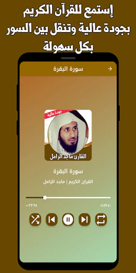 Through this application, you can listen to the Noble Qur’an with the voice of Majid Al-Zamil without the net, and the Quran recitation application is characterized by the voice of Majed Al-Zamil being free, and the Holy Quran application can be downloaded with the voice of Majed Al-Zamil with ease so that you can enjoy reciting the Noble Qur’an with the voice of Sheikh Majed Al-Zamil wherever you want and at any time you want We also designed the Holy Quran Majid Al-Zamil program without the net to be easy to use with a simple interface and a series with all the capabilities required to help you use the application, and also the fences are available in high-quality voice.