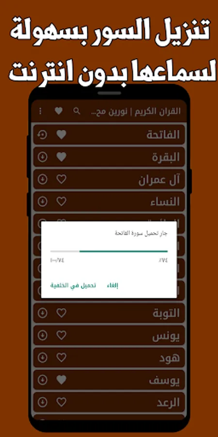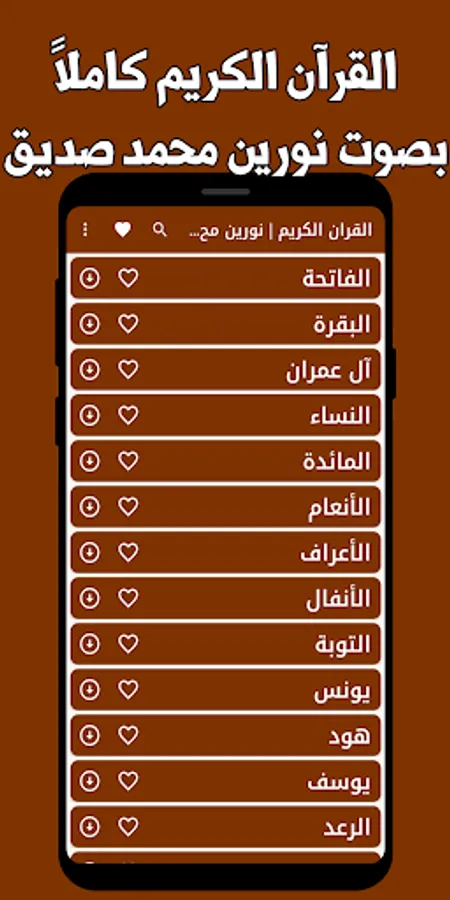 Simple and elegant interfaces, where you can choose the surahs that you like, add them to the favorites list, and listen to them without the Internet, with the voice of the reciter Sheikh Noreen Muhammad Siddiq, who has a wonderful voice that makes you humble to hear the verses of God.