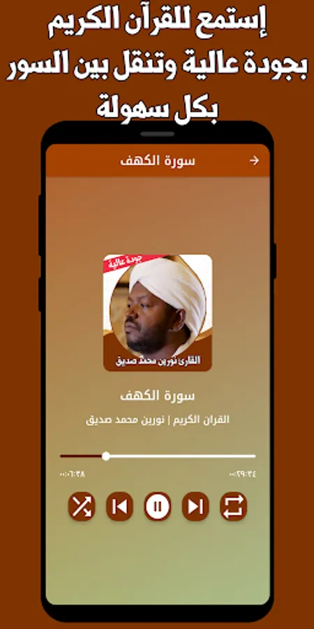The application is completely free, as after installing the application from the store, you will be able to listen to the Noble Qur’an with the voice of Sheikh Noreen Muhammad Siddiq with the narration of Hafs from Asim with ease.