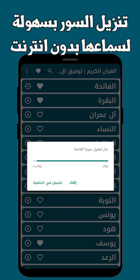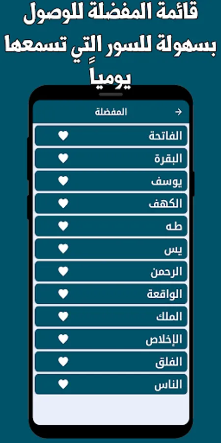 Simple and elegant interfaces, where you can choose the surahs that you like, add them to the favorites list, and listen to them without the Internet, with the voice of the reciter Sheikh Tawfiq Al-Sayegh, who has a wonderful voice that makes you humble to hear the verses of God.