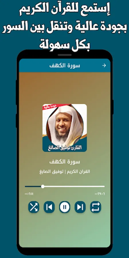 The application is completely free, as after installing the application from the store, you will be able to listen to the Noble Qur’an with the voice of Sheikh Tawfiq Al-Sayegh with the narration of Hafs from Asim with ease.