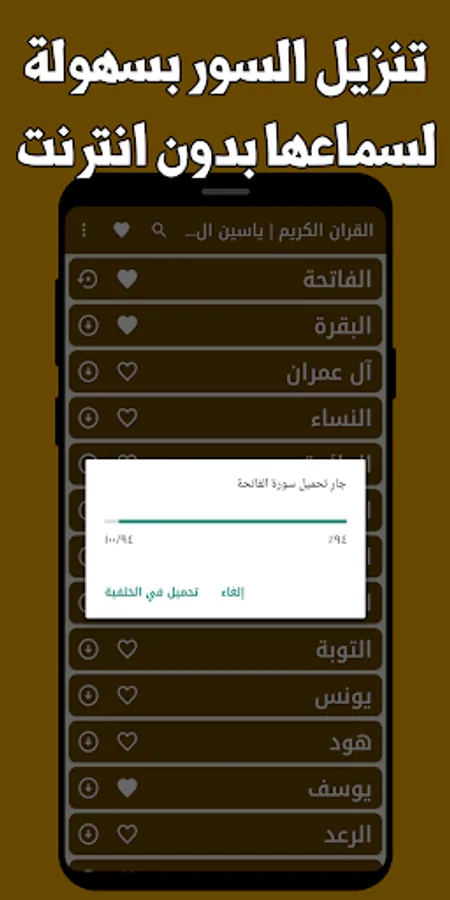 Features of the application of the Noble Qur’an Yassin Al-Jazaery without the Internet