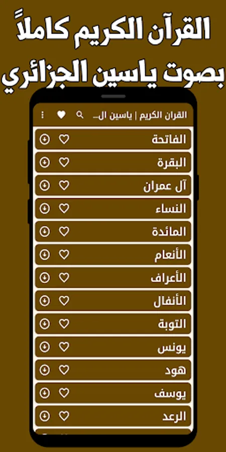 If you love the remembrance of God and hearing the Noble Qur’an in the voice of the reciter Sheikh Yassin Al-Jazaery, the application of the Holy Qur’an Yassin Al-Jazaery without the net provides you with downloading the surahs of the Noble Qur’an in the voice of Yassin Al-Jazaery mp3 for free.