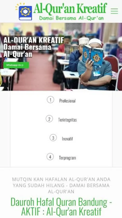 ACTIVE - Creative Alqur'an is the center of the Qur'anic tahfidzh center based in Bandung - West Java using the Best method approach. ACTIVE - Creative Alqur'an has some of the best programs in helping Muslims and Muslim women to memorize the Qur'an quickly and smoothly. God willing, you will memorize the Qur'an with the best method from us.