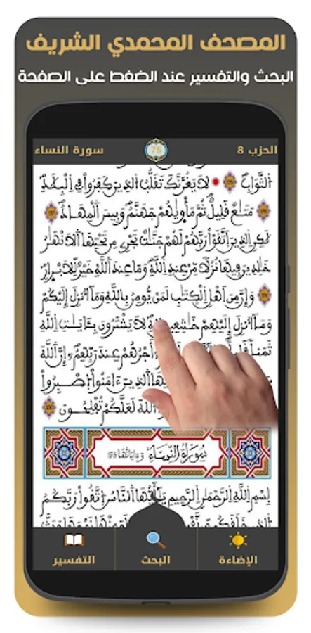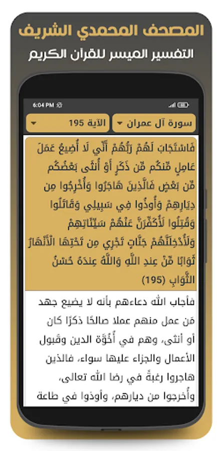 The Holy Qur’an with the narration of Warsh with the interpretation of the Qur’an is an application identical to the Holy Qur’an, the version of the Mushaf Muhammadi with the narration of Warsh, this Holy Qur’an is written according to the narration of Warsh on the authority of Nafeh, which was issued by the Mohammed VI Foundation for the dissemination of the Noble Qur’an.