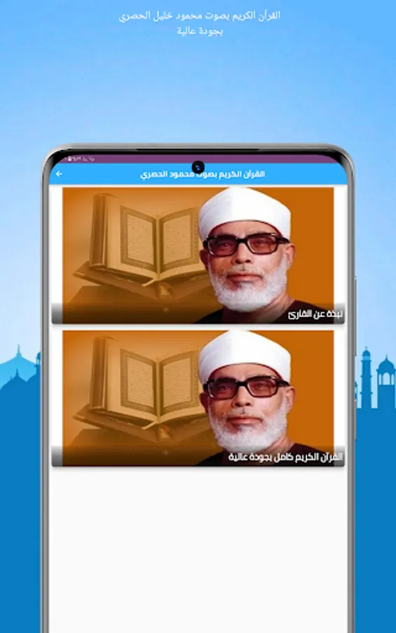 The application of the Noble Qur’an with the voice of Mahmoud Al-Hussary. You can hear all the surahs of the Noble Qur’an through your mobile phone or tablet with ease and ease through one program that contains all the surahs of the Noble Qur’an. In order to enjoy reciting the Noble Qur’an with the voice of Sheikh Mahmoud Al-Hussary in high quality, wherever you want.