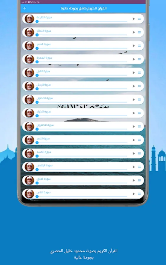 Definition of a complete Quran application with the voice of Mahmoud Al-Hussary in high quality ⭐
