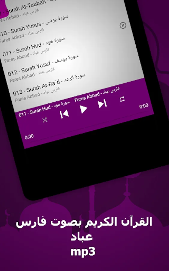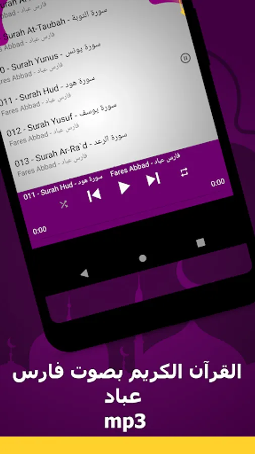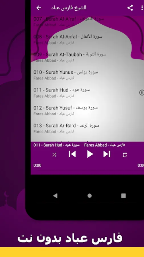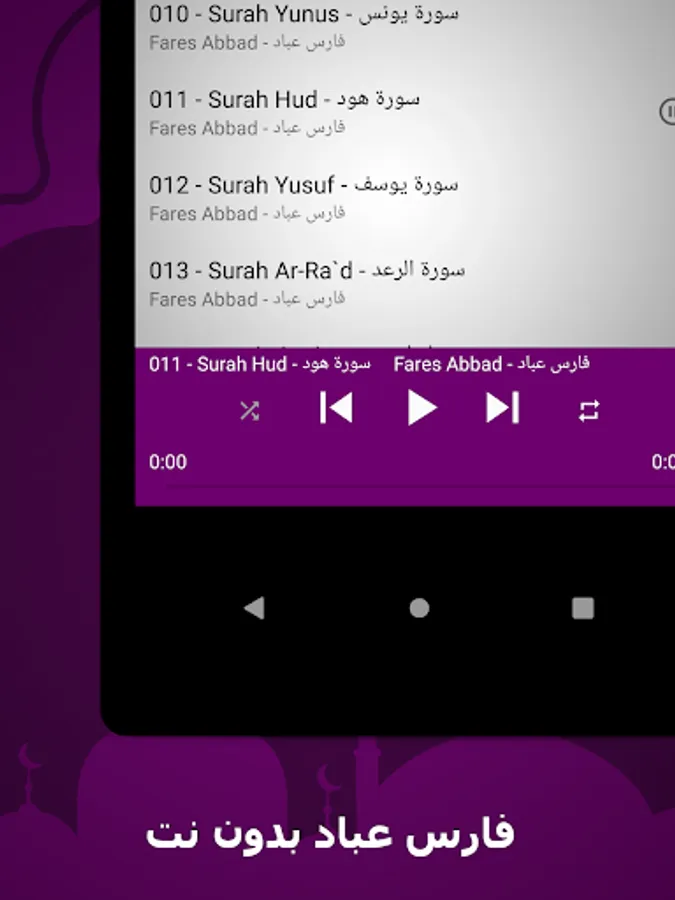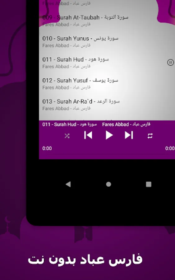 🌟 The surahs available in our application: Fares Abbad, a complete Quran without the net