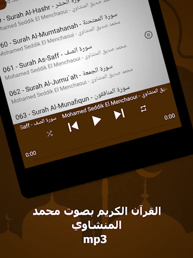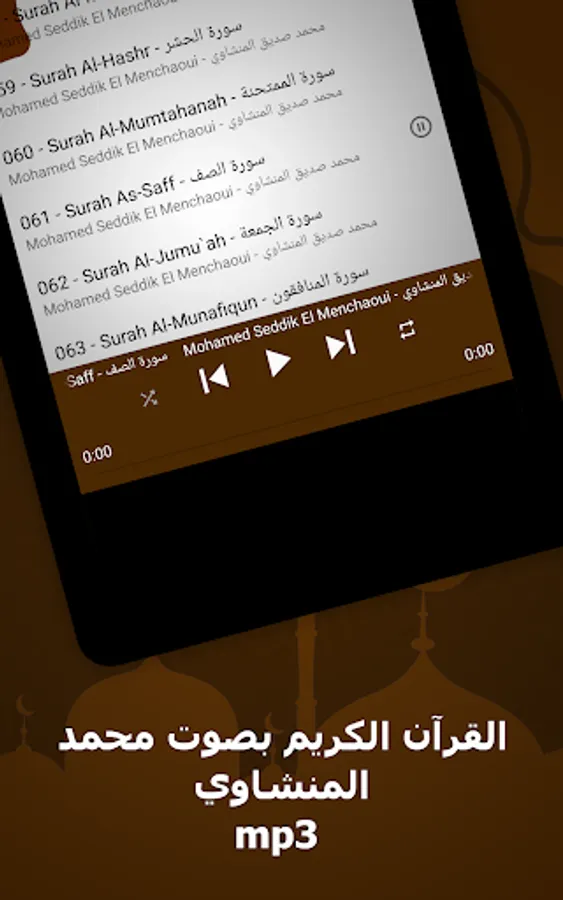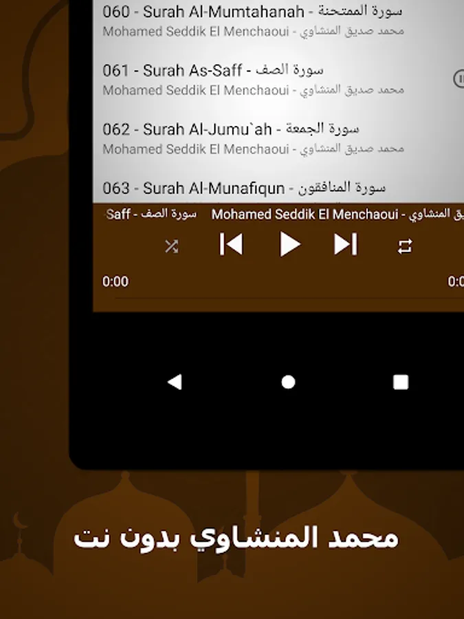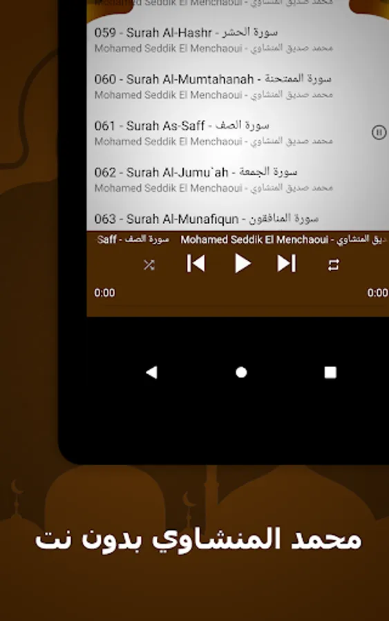 🌟 The surahs available in our application: Muhammad Al-Minshawi without Net, a complete Quran