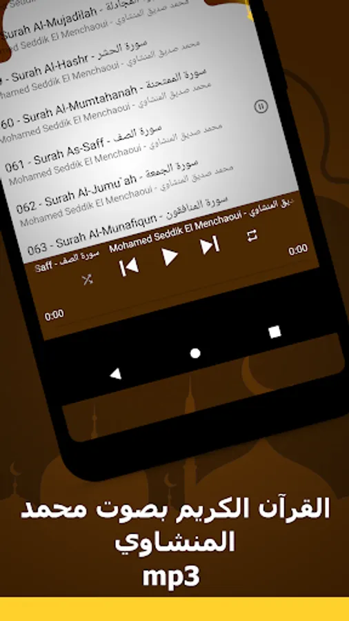 ✅ After downloading the application, you can listen to the surahs of the Noble Qur’an with the voice of Sheikh Muhammad Al-Minshawi for free, anytime and anywhere with ease.