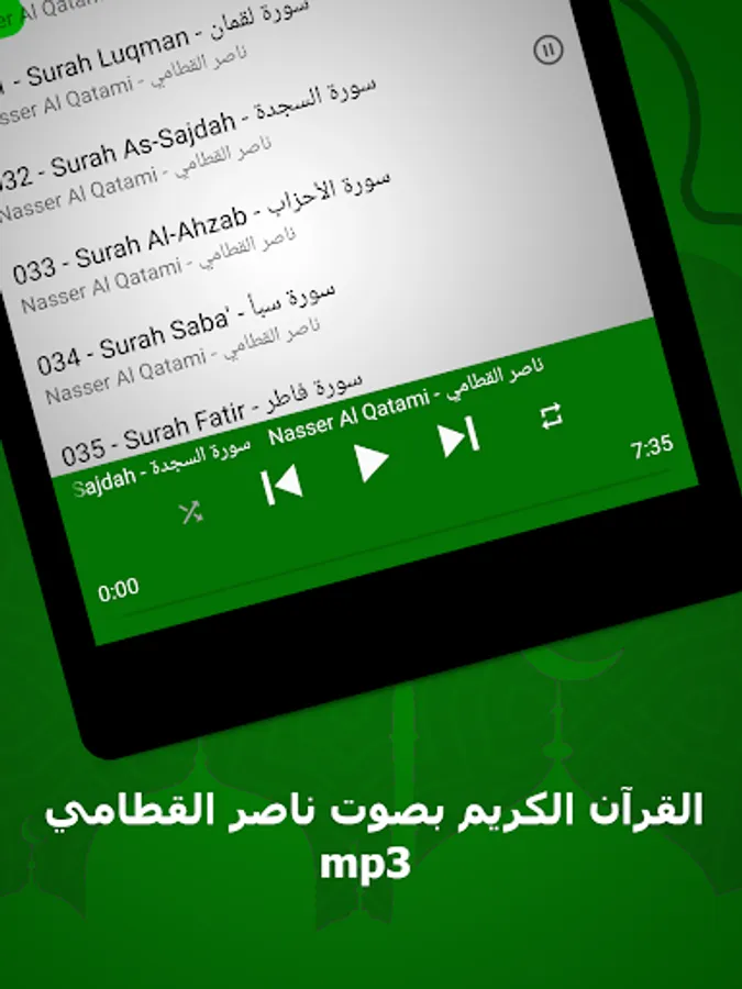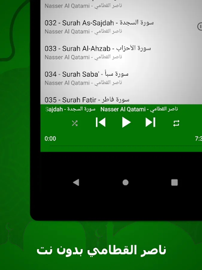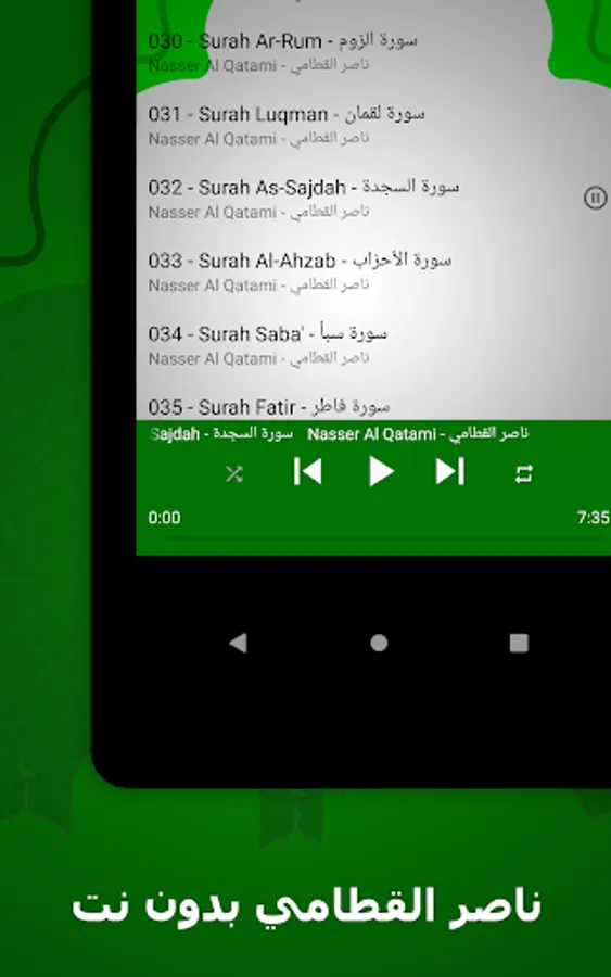 🌟 The surahs available in our application: Nasser Al-Qatami, without the net, a complete Quran
