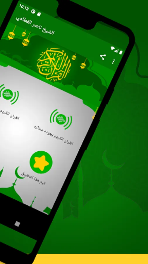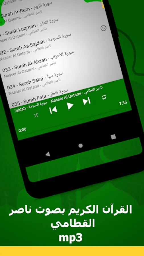 ✅ The application is also characterized by being free and available on the store for Android phones, so that you can enjoy reciting the Noble Qur’an with the voice of Sheikh Nasser Al Qatami wherever you want.