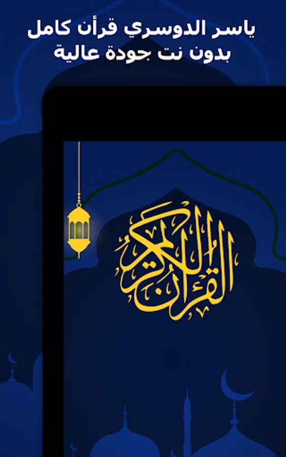 ✅ The application is also characterized by being free and available on the store for Android phones, so that you can enjoy reciting the Noble Qur’an with the voice of Sheikh Yasser Al-Dosari wherever you want.