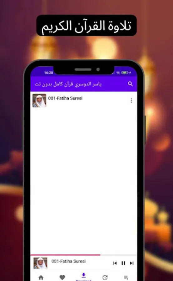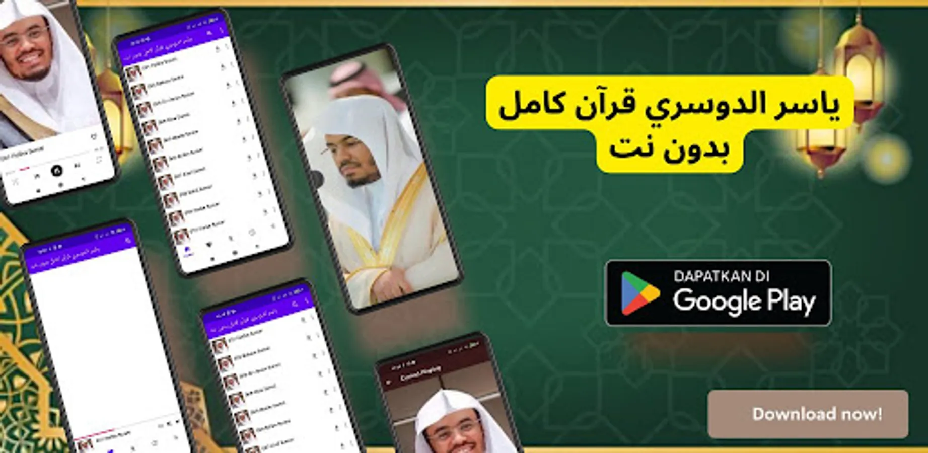 تطبيق القرآن الكريم بصوت القارئ ياسر الدوسري هو تطبيق مجاني يمكنك تنزيله على متجر التطبيقات لهواتف الأندرويد. يتيح لك هذا التطبيق الاستماع إلى القرآن الكريم كاملاً بتلاوة جميلة وصافية، دون الحاجة إلى الصال بالإنترنت.