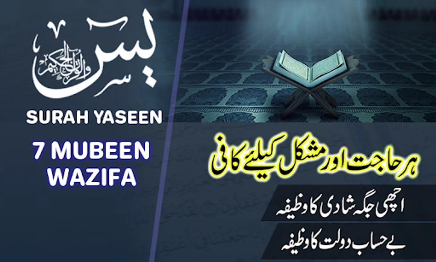 This application gives you a Wazifa of Surah Al-Yasin with 7 Mubeens, with instructions in English/Urdu Language.