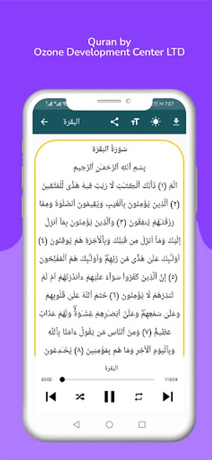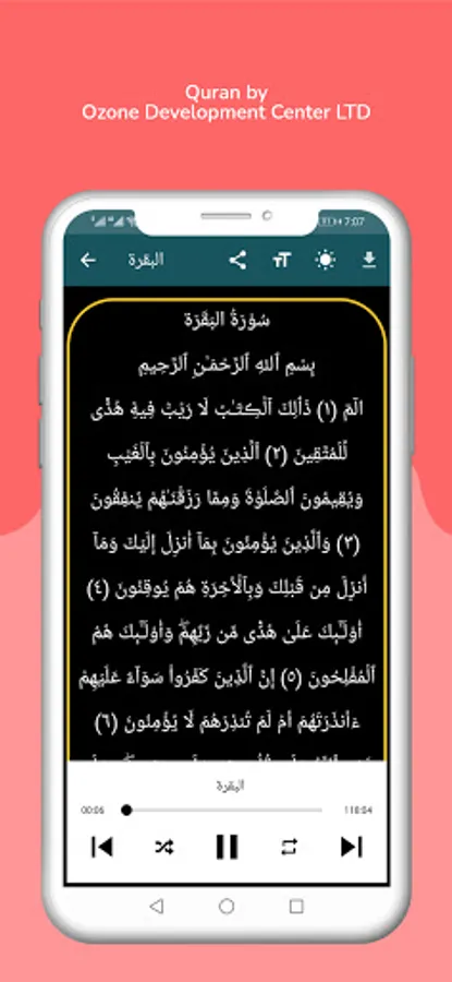 • Bookmark of the Ayah to restore the recitation from where the user has left lastly
