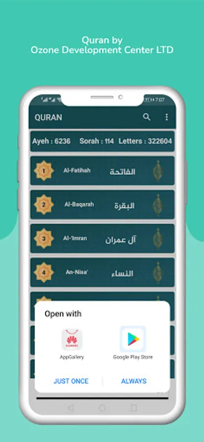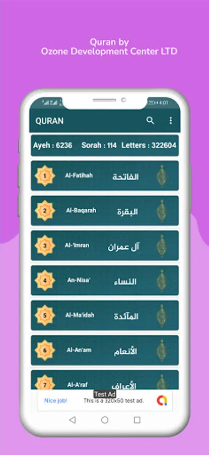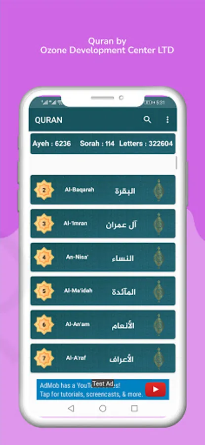 • It incorporates all the 114 Surahs of Quran within order and proper settings