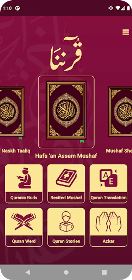 Our Application contains the Holy Quran in several narrations. There are a translations of the meanings of the Noble Qur’an, Interpretation of the Qur’an with 8 different interpretations, the translation of the Holy Quran, the stories of the Holy Quran and Finally, the Ramadan competition
