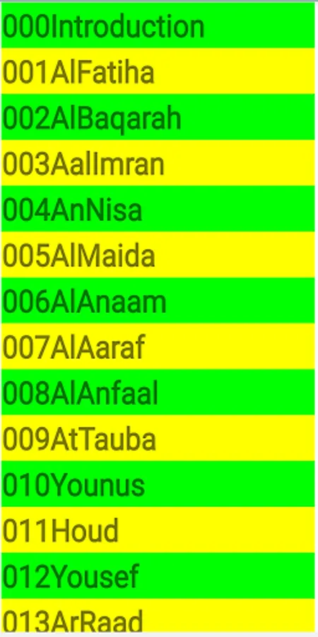 Individual Quranic Surahs separated for quick and easy access.