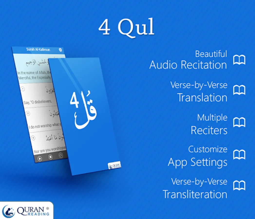 4 Qul of Quran is an Islamic Application which contains highly effective Four Holy Surahs of Al-Quran Majeed, i.e. Al-Kafiroon, Al-Ikhlas, Al-Falaq and An-Nas. It lets Muslims all over the world recite, learn and listen to beautiful narration of these Sacred Chapters any time. It also comes up with Translation and Transliteration attributes that make the learning process easier.