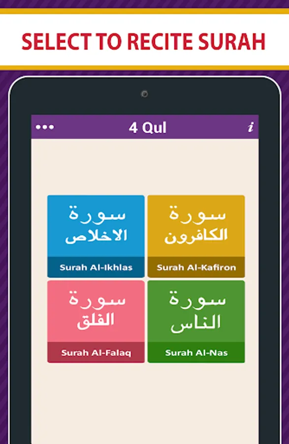 Get this free and easily understandable Smartphone application of 4 Qul of Quran in order to benefit from learning and listening to recitation of one of the most blessed Chapters of the Holy Quran.
