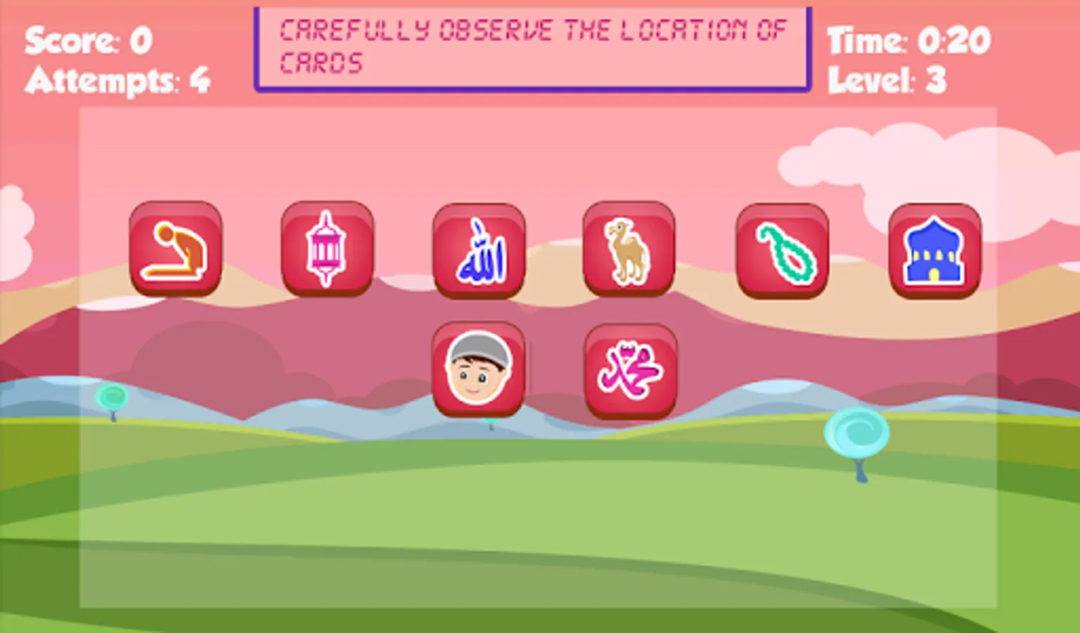 Islamic Memory is a free mobile game that challenges your mind’s ability to grasp the images and focus. It checks how much attention your mind gives and how quickly your mind responds in return.