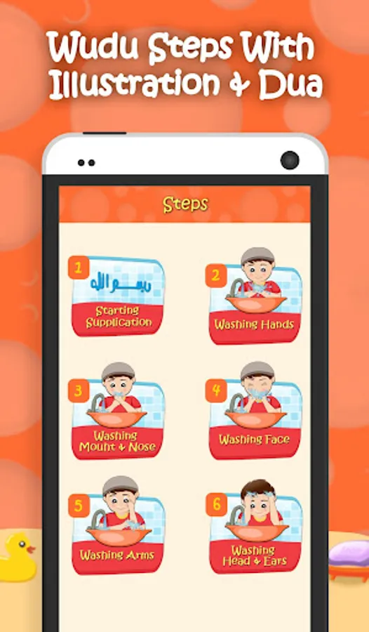 Kids Wudu Series is an Android App for teaching kids Wudu. Learn how to make Wudu with easy steps. This Application consist Wudu steps with illustrations. Step by step Salah for kids prior needs Wudu (ablution), Tayammum and Islam Duas to learn and memorize.