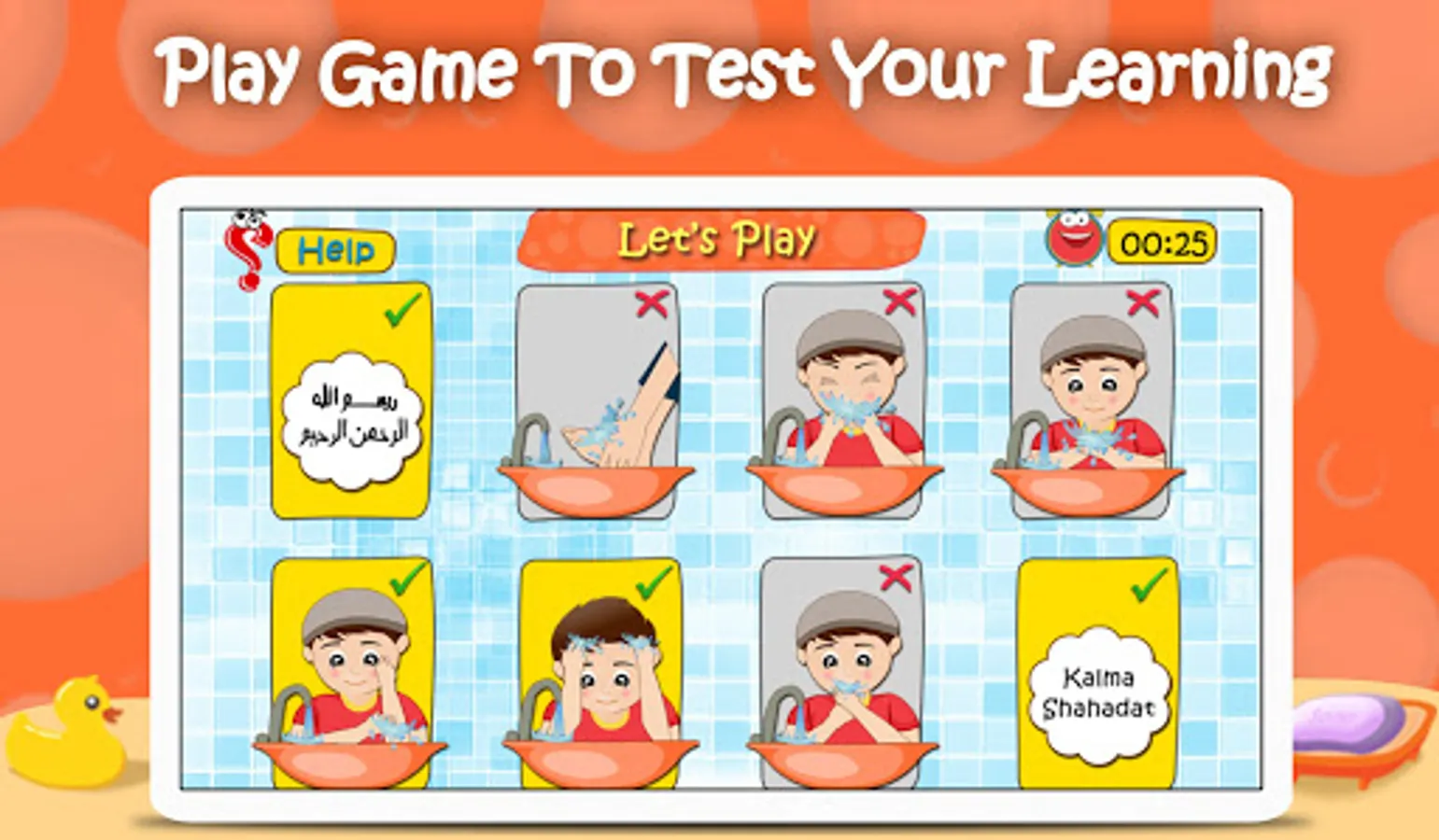To test the kids learning and to keep their interest Quiz has added in the end. Quiz tests kids knowledge about Islam Wudu procedure.