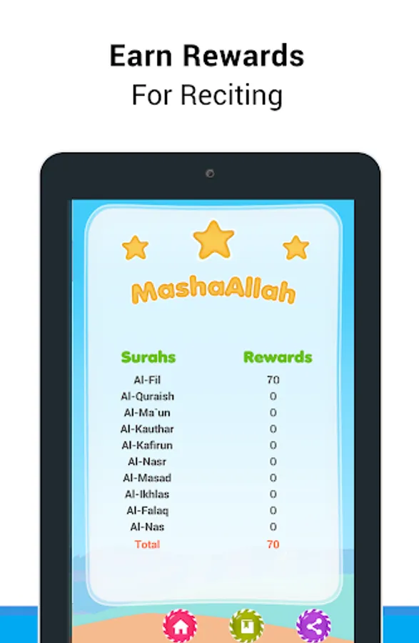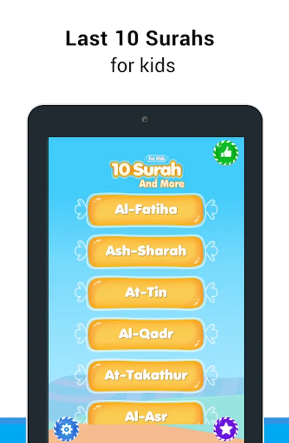 10 Surahs for Kids 2017 is a dedicated Word by Word application for Muslim kids which serves as a Quran Tutor to help them automatically learn last ten Chapters of the Holy Quran through its unique features. In addition, there is Reward Counter, which informs the kids about Rewards Gained while learning Verses. The app features the Last 10 short Surahs from the Holy Quran, which include: