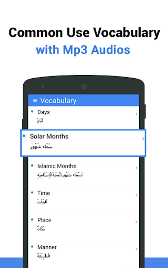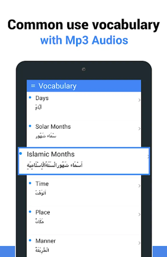 Common Sentences & Words: The category includes words and common sentences of daily use in Arabic