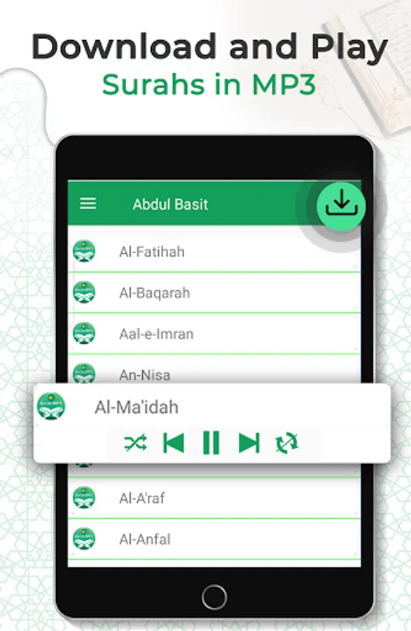 Listen Quran offline without internet and wifi connection.
