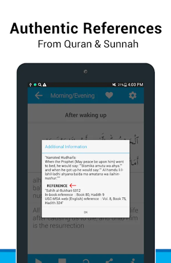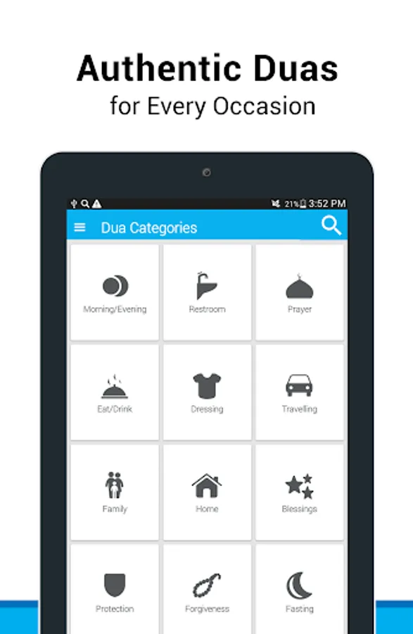 iii) Recitation for each dua is also given in application that will also help the Muslims to know how to correctly recite a Dua or Dhikr.