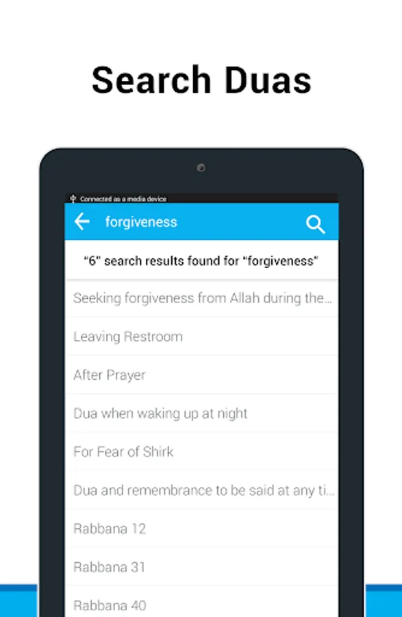 iv) Search feature allows the user to find out Duas featuring the particular term.