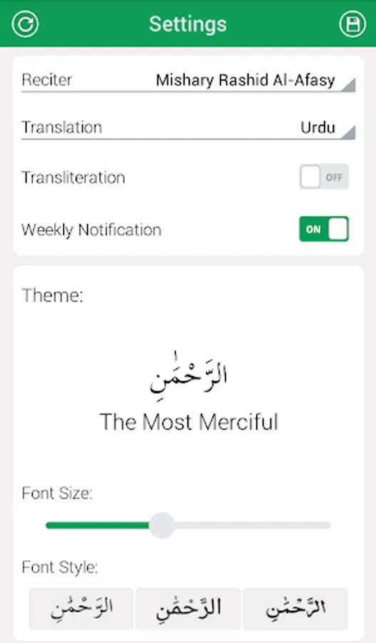 • Audio recitation in the soul full voices of Mishray Rashid Al-Afsay and Saad Al-Ghaamidi for deep contemplation.