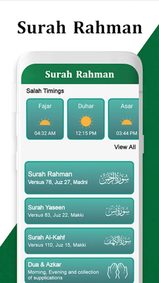 Listen and read Surah Rahman, Surah kahf, Surah Yaseen, subha sham ky azkar with Urdu translation.