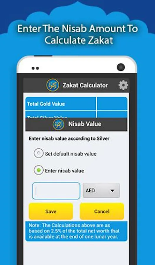 The App also consists of a Nisab tab where Nisab is the amount of wealth that makes a person liable
