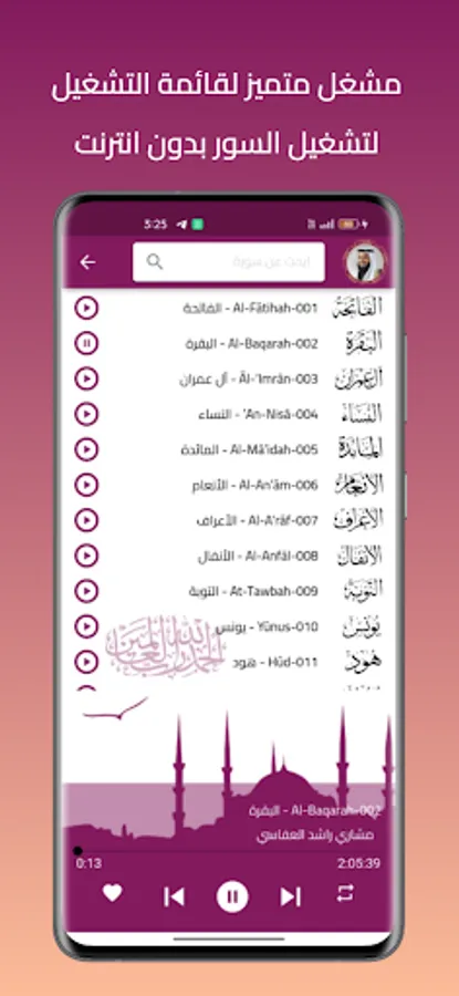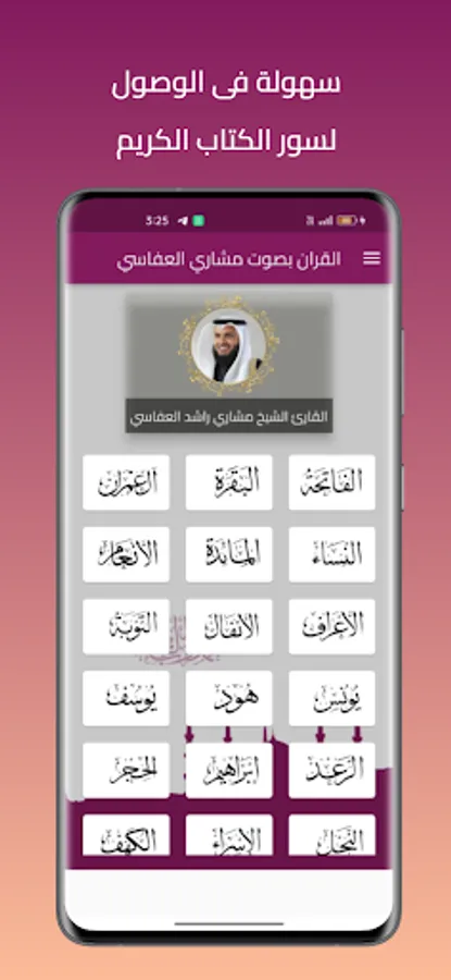 The application of the Noble Qur’an provides the voice of the reciter, Mishary Rashid Al-Afasy. You can hear all the surahs of the Holy Qur’an through your device, whether it is your mobile phone or your tablet, with ease and ease through one program and application that contains all the surahs of the Holy Qur’an. The store is for all devices that operate with the Android system. You do not need the Internet on your mobile phone to listen in order to enjoy the recitation of the Noble Qur’an with the voice of Sheikh Mishary Rashid Al-Afasy wherever you want.