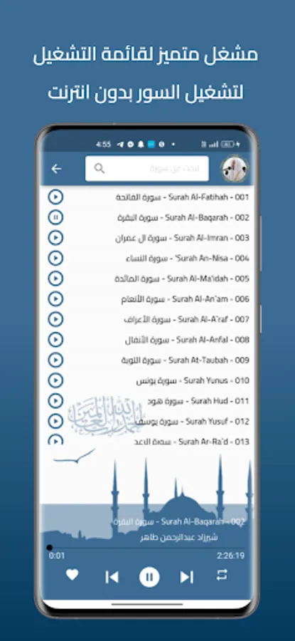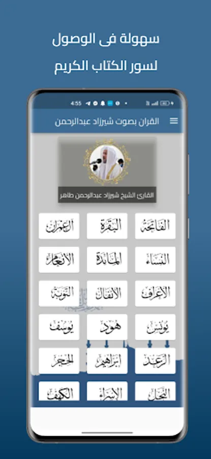 The application of the Noble Qur’an provides the voice of the reciter Sherzad Abdul Rahman Taher. You can hear all the surahs of the Noble Qur’an through your device, whether it is your mobile phone or your tablet, with ease and ease through one program and application that contains all the surahs of the Noble Qur’an. The store is for all devices that operate with the Android system. You do not need the Internet on your mobile phone to listen in order to enjoy the recitation of the Noble Qur’an with the voice of Sheikh Shirzad Abdul Rahman Taher wherever you want.