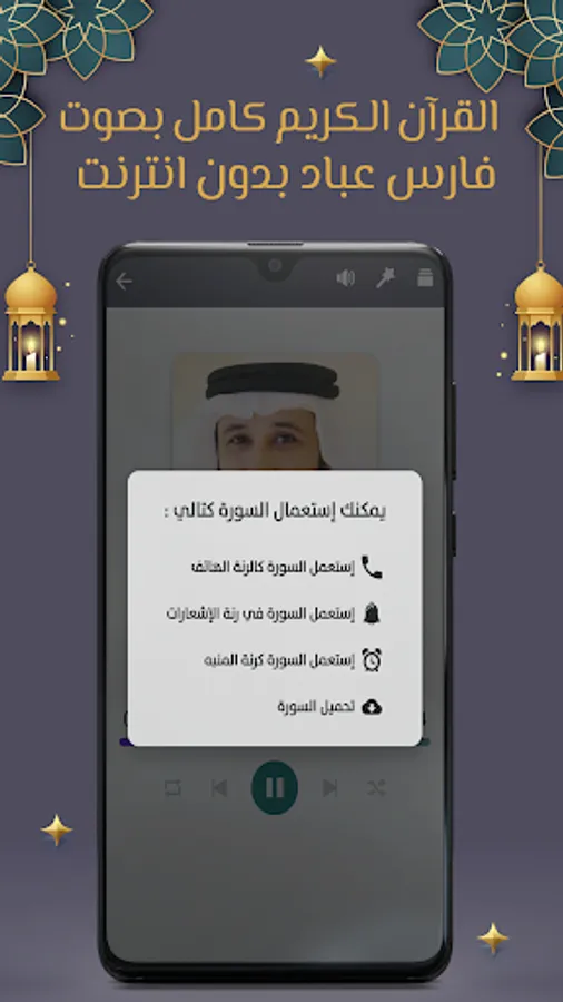 - Download the application, and congratulations, you can enjoy a unique experience with Sheikh Fares Abbad in reciting the Qur’an. - The ability to share the entire Fares Abbad Quran application without the net via social media such as Facebook, WhatsApp, email, Twitter, and others.