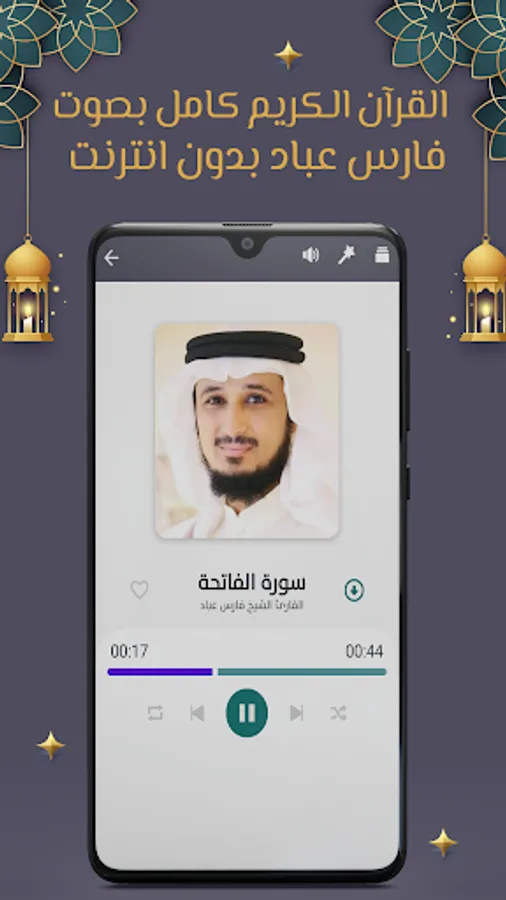After downloading the Fares Abbad application, the entire Qur’an without the net, you can listen to surahs of the Noble Qur’an with the voice of Sheikh Fares Abbad for free, anytime and anywhere with ease.
