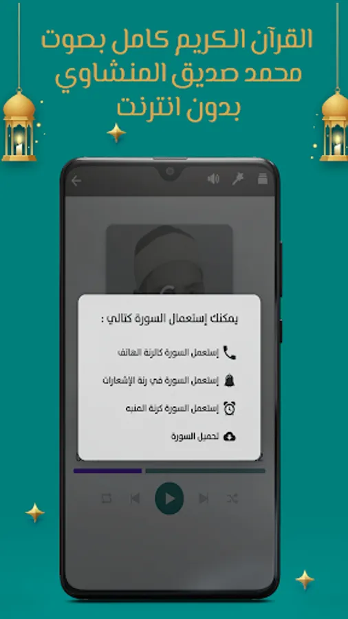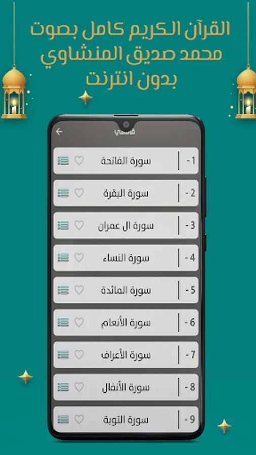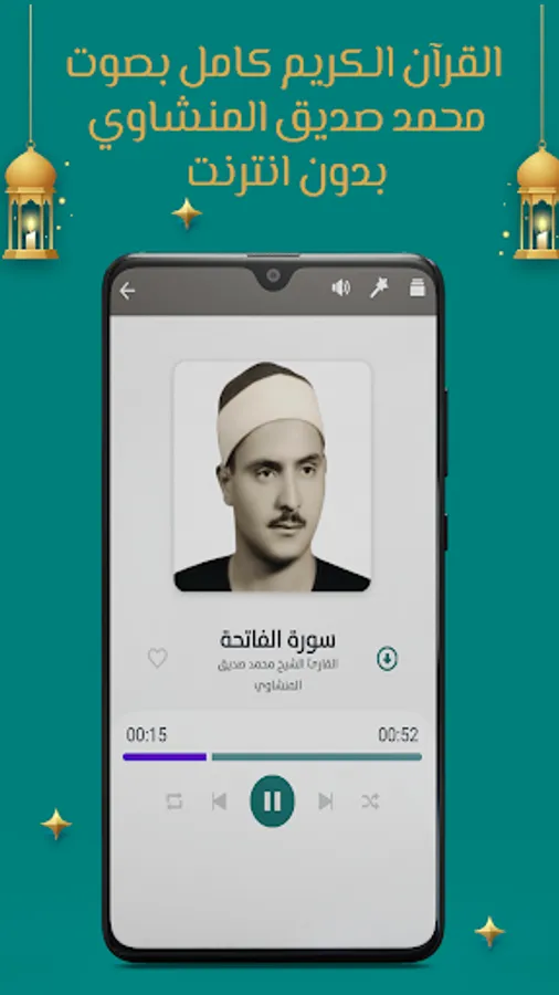 After downloading the Muhammad Siddiq Al-Minshawi application, a complete Quran without the net, you can listen to surahs of the Noble Qur’an with the voice of Sheikh Muhammad Siddiq Al-Minshawi for free, anytime and anywhere with ease.