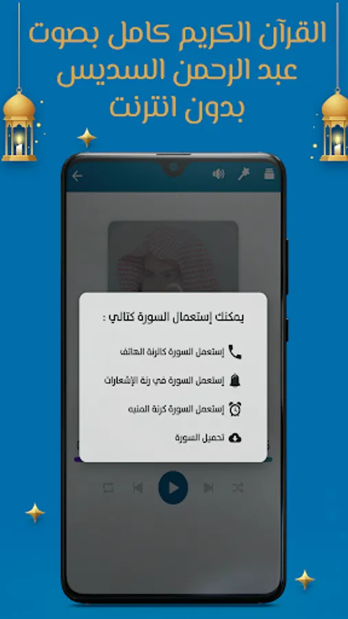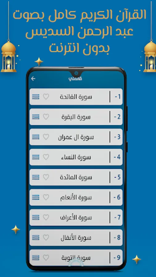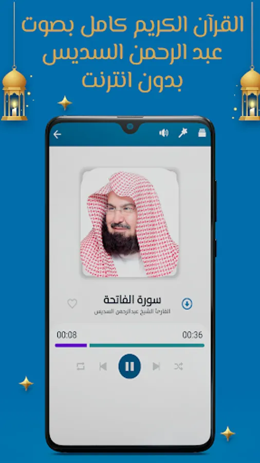 Our application, Abd al-Rahman al-Sudais, a complete Quran without the net, enables you to hear the entire Holy Qur’an through your mobile phone or tablet device with ease and ease through one application that contains all the surahs of the Holy Qur’an. He explained all the verses and listened to him at the same time, and it is free, as it is available on the store for Android phones. In order to enjoy reciting the Noble Qur’an with the voice of Sheikh Abdul Rahman Al-Sudais wherever you want.