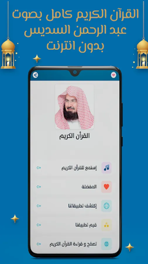 - Download the application, and congratulations, you can enjoy a unique experience with Sheikh Abdul Rahman Al-Sudais in reciting the Qur’an. - The possibility of sharing the Abd al-Rahman al-Sudais application, a complete Quran without the net, through social media such as Facebook, WhatsApp, email, Twitter, and others.