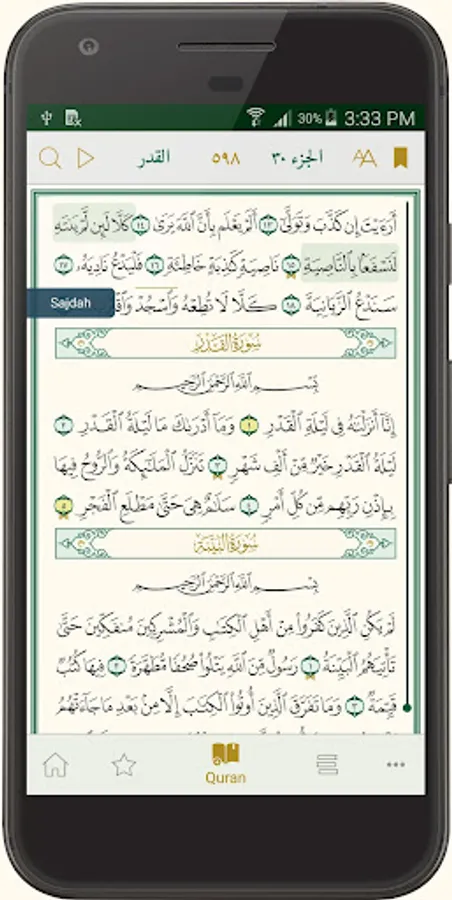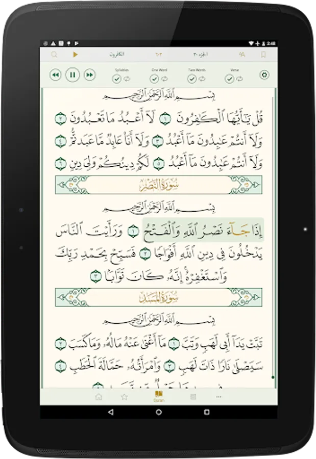 For the first time ever long tap on any word in the Quran to instantly access its translation, root word, root word definition, grammar, and transliteration. Never skip a word you don't know any more and learn new words every time you read!