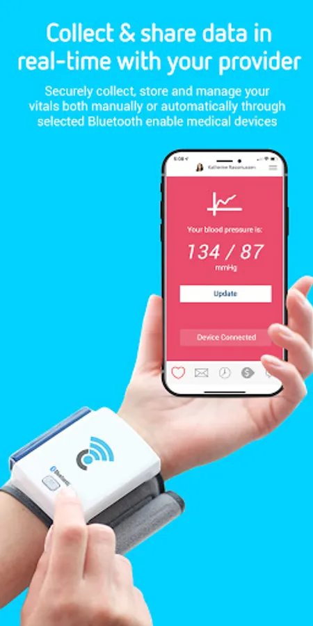 All recommendations from your doctors will automatically appear on the app giving you an overview of when to check in with your health provider, as well as the aspects of your health that you can monitor at home. This includes measuring your blood pressure as well as taking your medication.