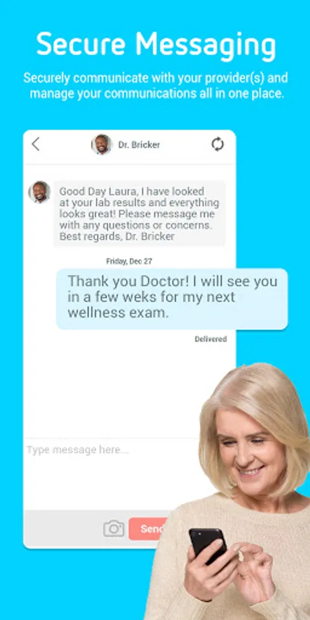 Whether you have a question for your doctor, the nurse or any of the staff members you can easily send a secure message to the office using the app.