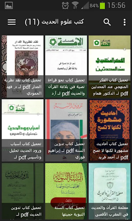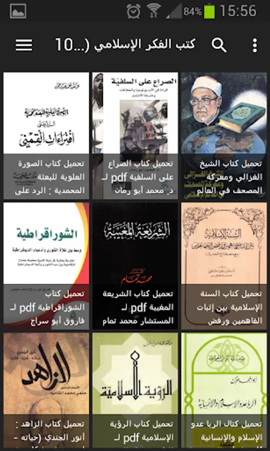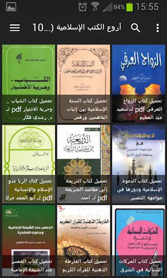 The application includes hundreds of diverse Islamic books: