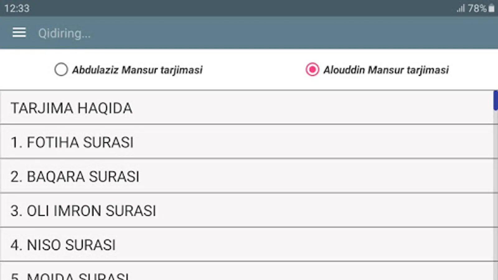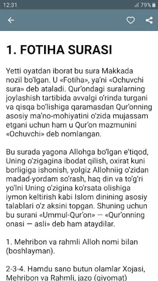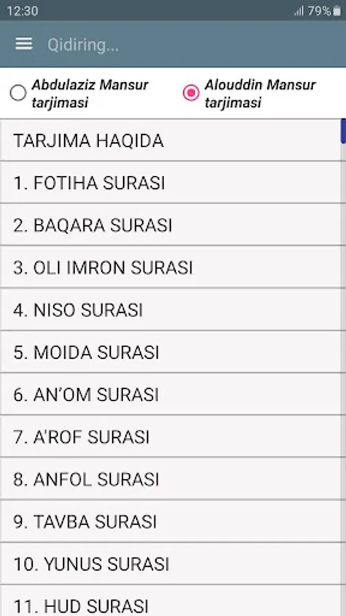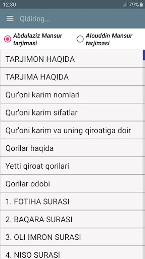 Ushbu dastur o'zbek tilidagi Qur'on suralarining o'zbekcha ma'nolari va tarjimalarini o'z ichiga oladi!