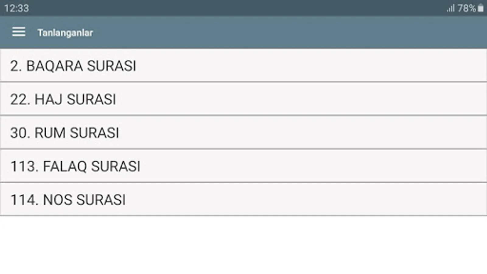 Qur'oni karimning to'laqonli 114 surasi, jumladan eng ko'p tilga olinadigan: Fotiha, Baqara, Yosin, Nos, Kavsar va Ixlos suralari mavjud!