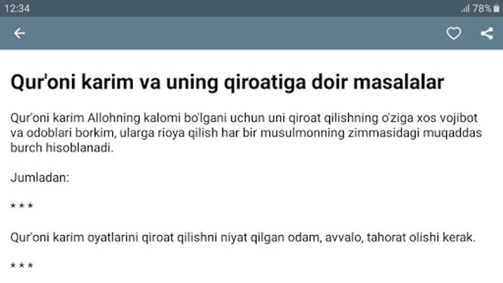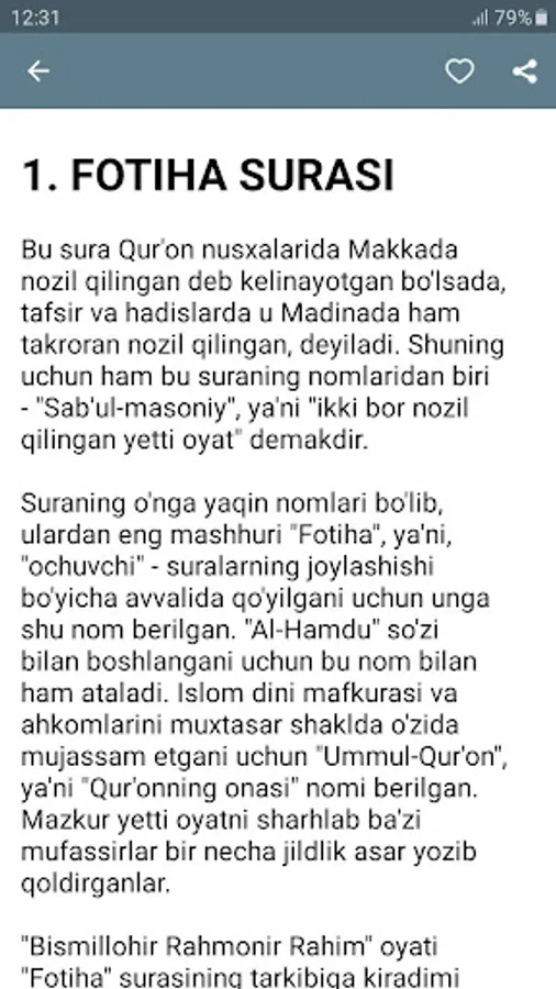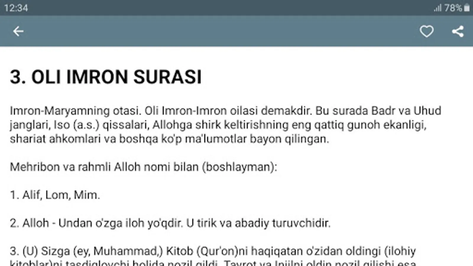 Ilovadan parcha: "Arab tilida o'qib anglash hammaning ham imkon darajasida emas! Hatto arablarning o'zlari ham Qur'on oyatlarini to'la tushuna olmasliklarini tan oladilar. Ulug 'sahobalar ham ko'pdan-ko'laribarida baribazm yechimga kelisha olmay, Rosul alayhissalomning o'zlaridan so'rab, aniqlab olganlari to'g'risida sahih hadislar mavjud .... "